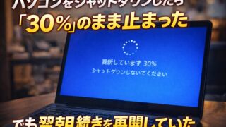 パソコンをシャットダウンしたら「30%」と出て少し焦った日