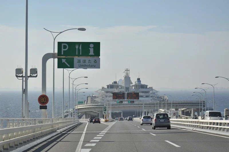 荷物を積んだ車で高速道路に乗る。