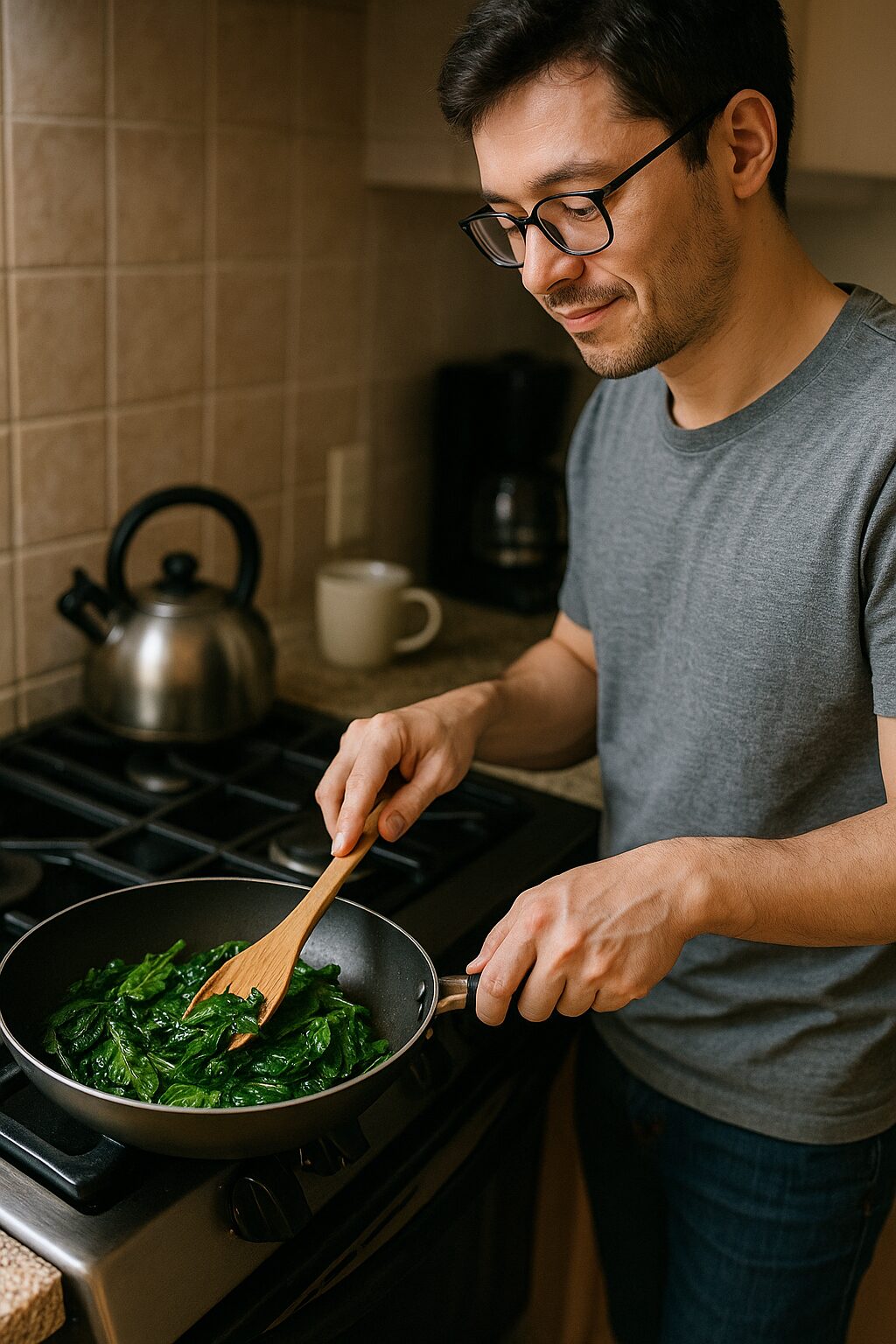 ほうれん草を焼くだけのシンプルな夜ご飯。
