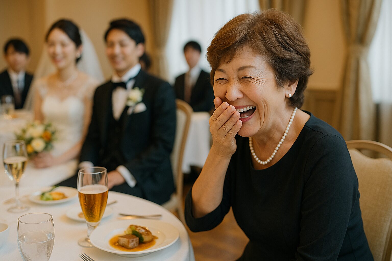 「うちの息子なんてさ、結婚式の料理よりファミレスのほうがいいって言ってたわよ。あはは!」